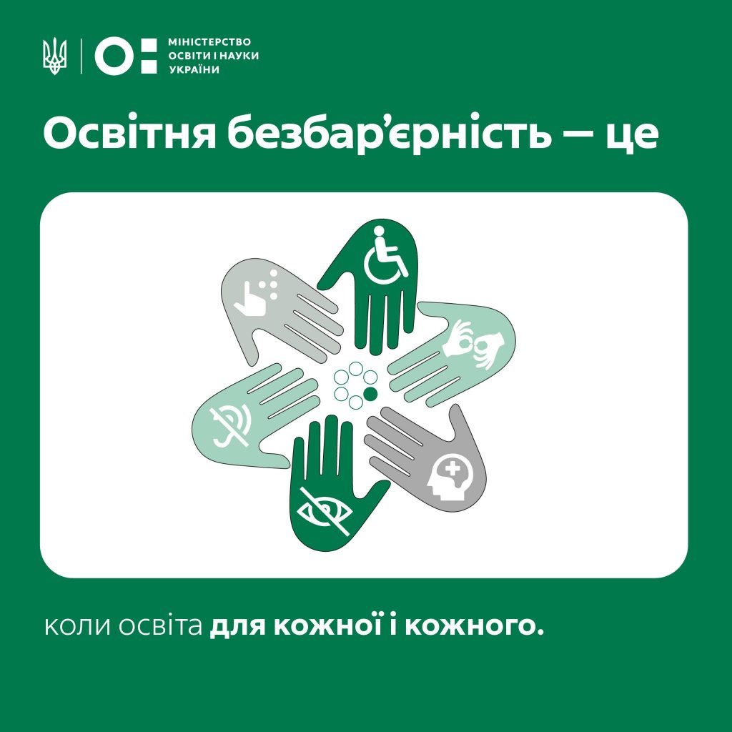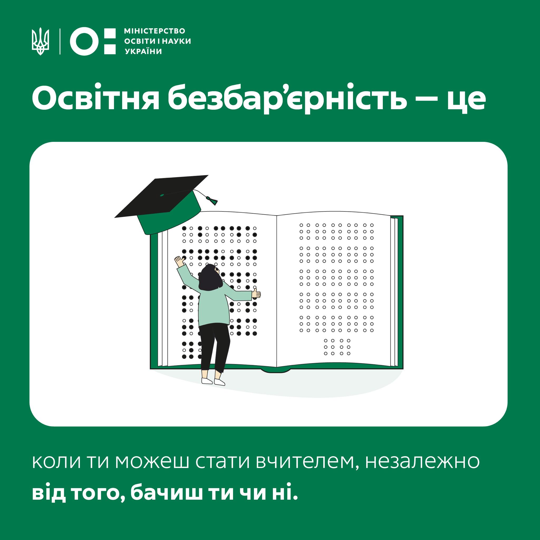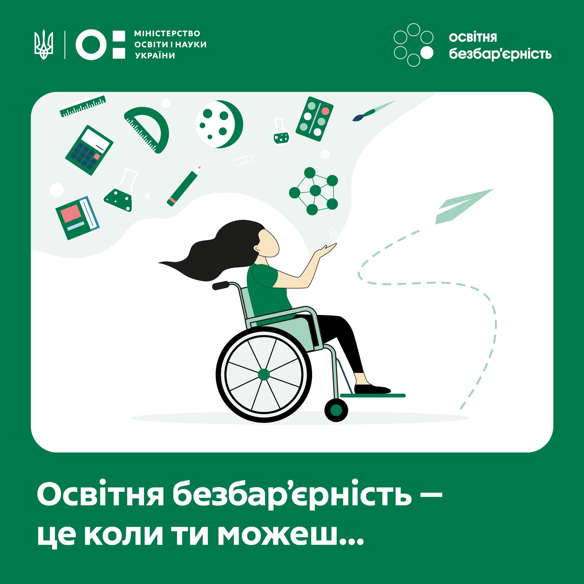 Освітня безбар’єрність — це створення рівних можливостей та вільного доступу до освіти для всіх, незалежно від віку, стану здоров’я, місця проживання чи інших обставин, щоб кожен міг навчатися протягом життя, здобувати нові професії та підвищувати кваліфікацію. Це реалізується через інклюзію, адаптацію навчальних програм, забезпечення доступною інфраструктурою та технологіями, а також підтримку безперервного навчання, що є частиною Національної стратегії зі створення безбар’єрного простору в Україні до 2030 року.
