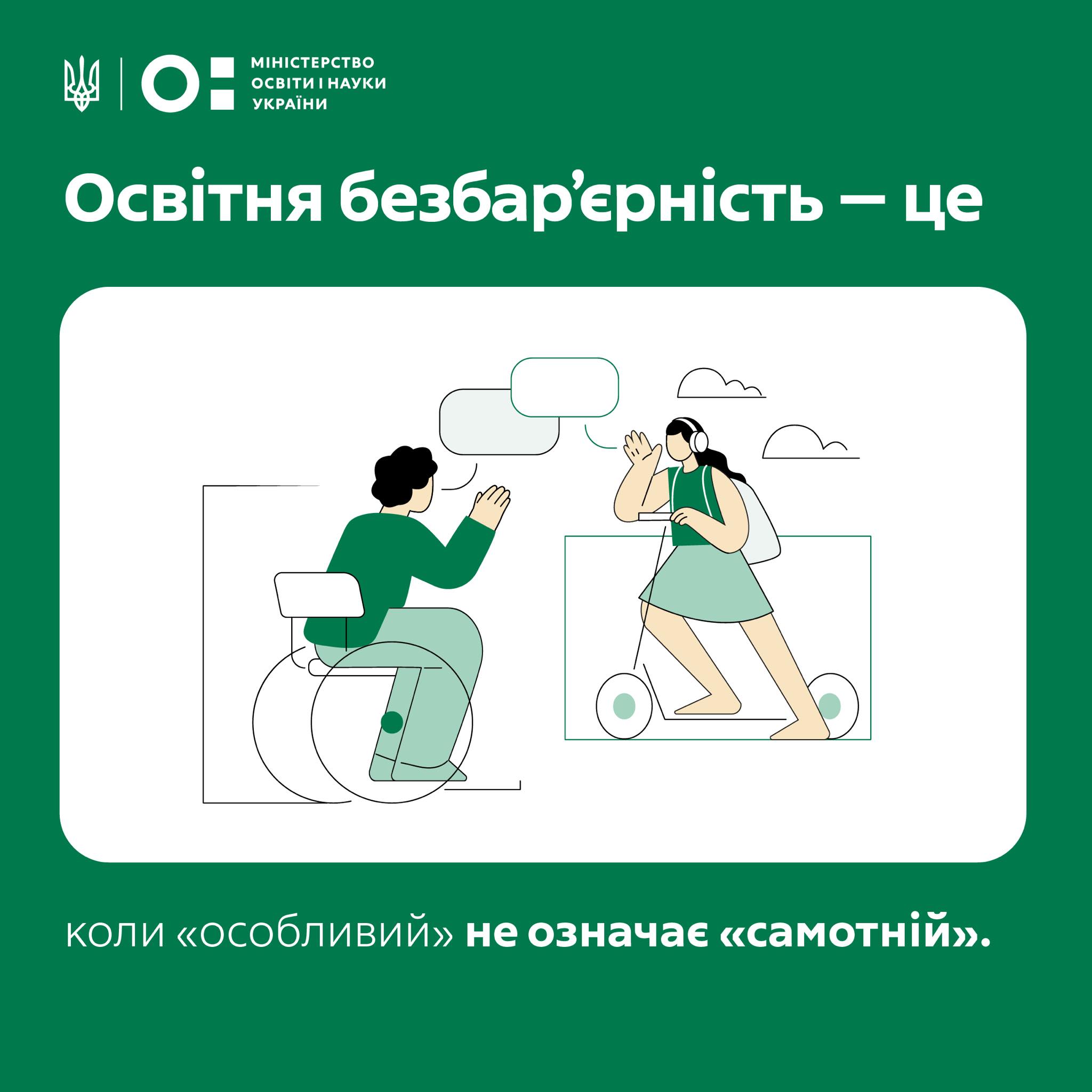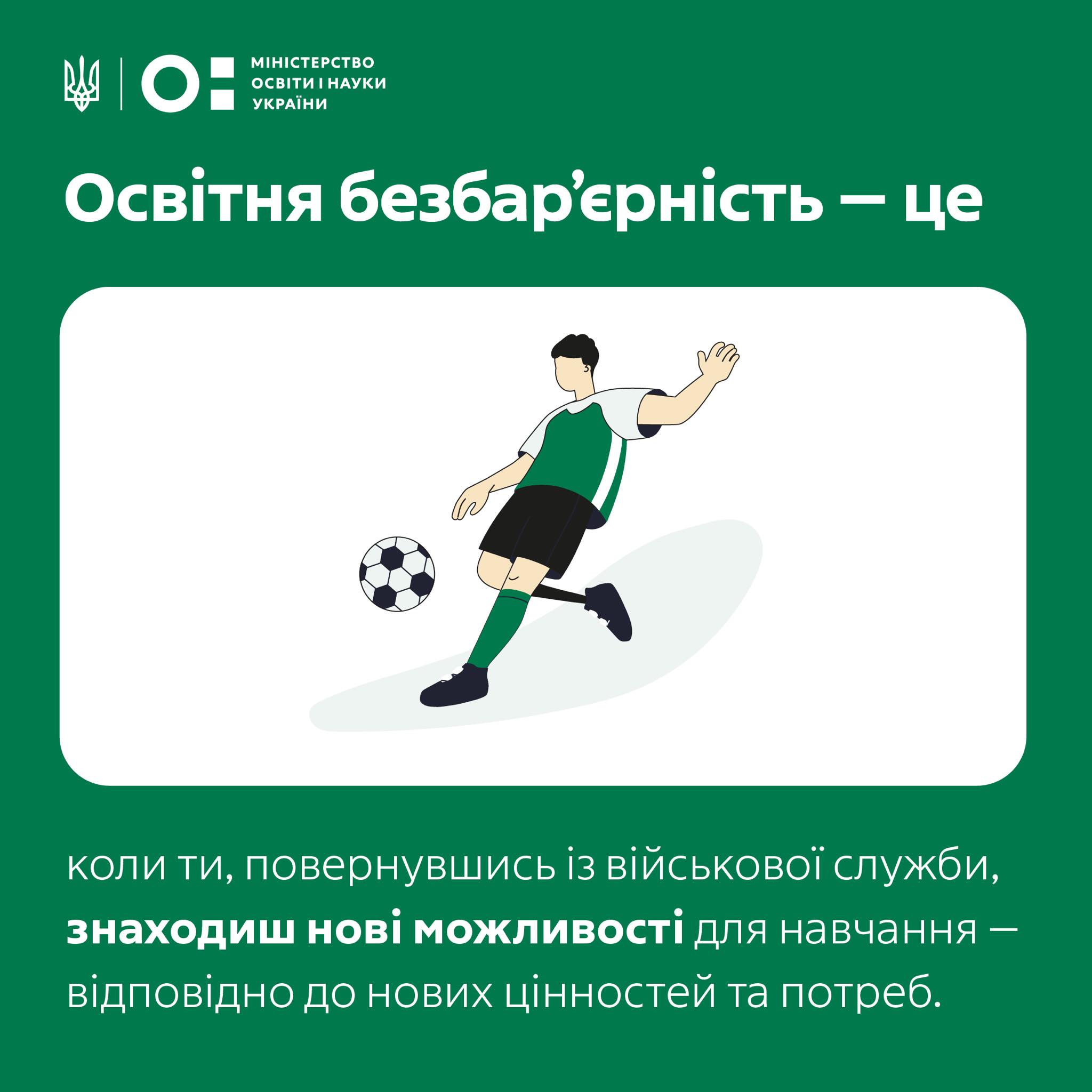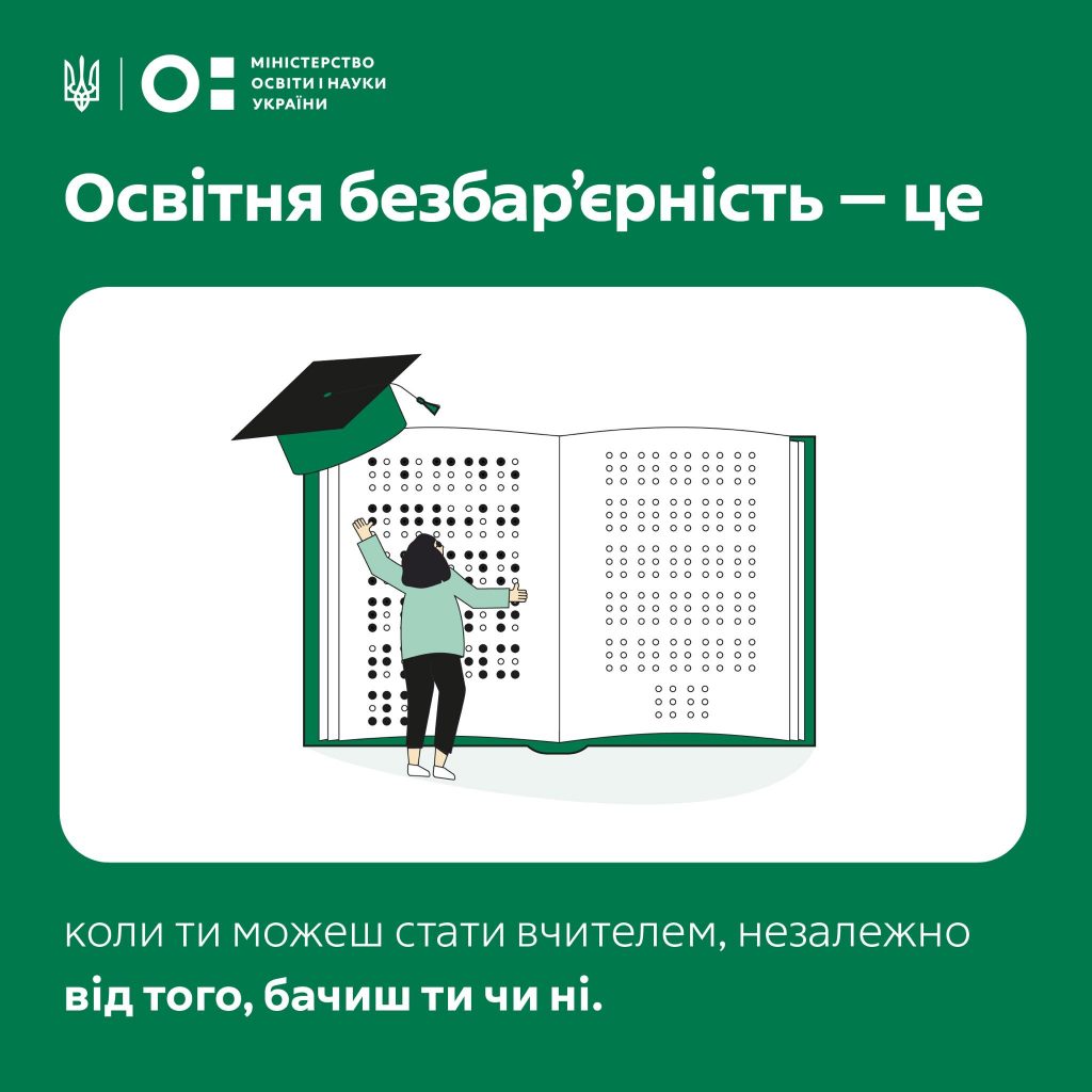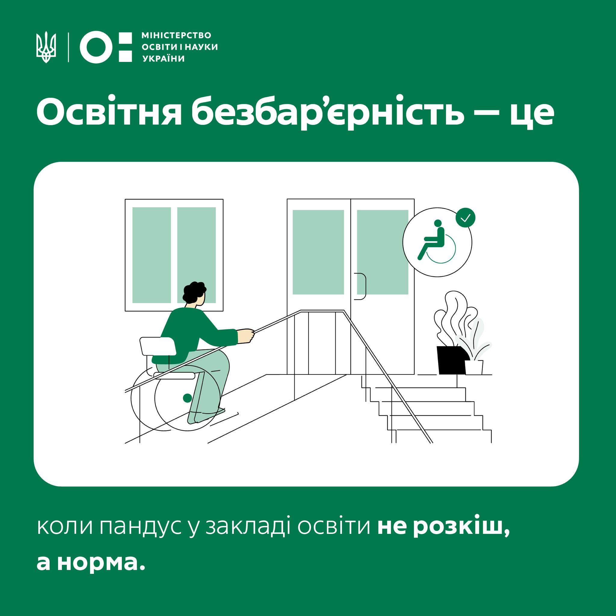 Освітня безбар’єрність — це створення рівних можливостей та вільного доступу до освіти для всіх, незалежно від віку, стану здоров’я, місця проживання чи інших обставин, щоб кожен міг навчатися протягом життя, здобувати нові професії та підвищувати кваліфікацію. Це реалізується через інклюзію, адаптацію навчальних програм, забезпечення доступною інфраструктурою та технологіями, а також підтримку безперервного навчання, що є частиною Національної стратегії зі створення безбар’єрного простору в Україні до 2030 року.
