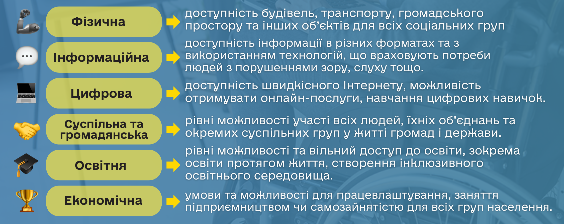 Безбар’єрність — це створення такого суспільства, де кожна людина, незалежно від віку, статі, стану здоров’я чи інших особливостей, має рівний та вільний доступ до всіх можливостей (освіти, роботи, інформації, послуг, пересування) та почуває себе комфортно, гідно й цінно. Вона передбачає усунення перешкод у фізичному, інформаційному, цифровому, освітньому, економічному та суспільно-громадянському просторі, щоб кожен міг повноцінно брати участь у житті суспільства.