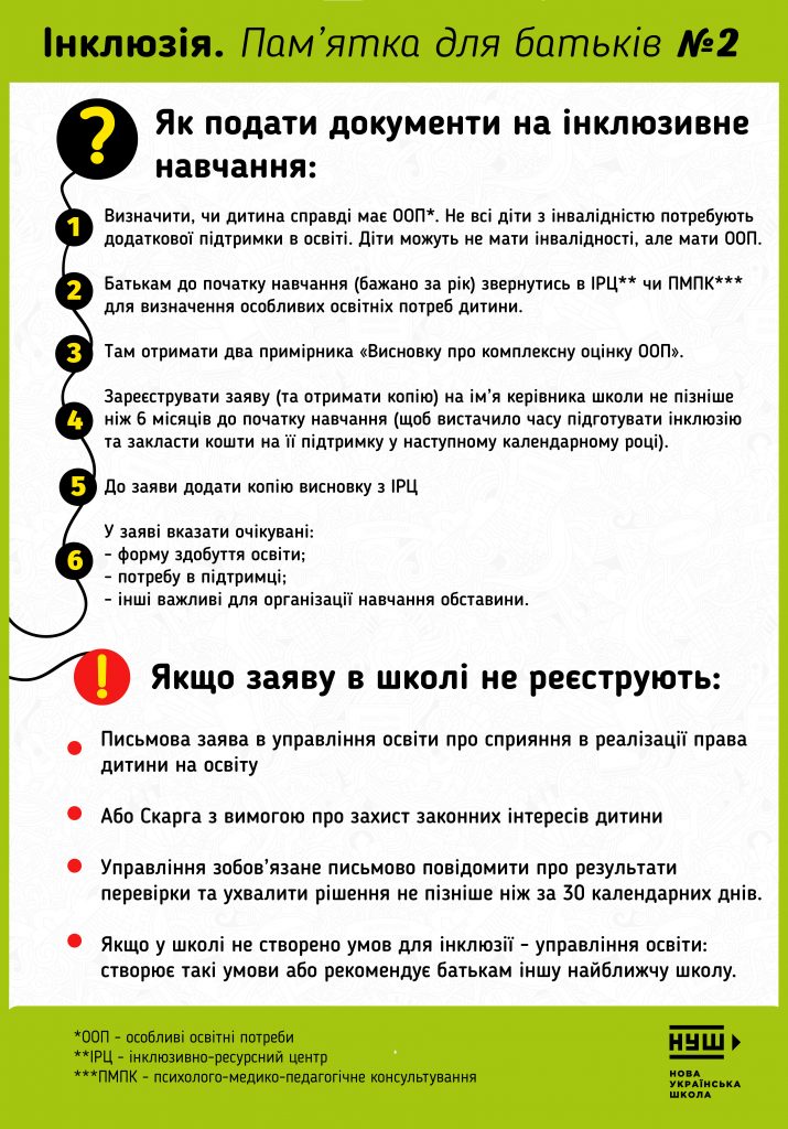Покрокові дії батьків по організації інклюзивного навчання