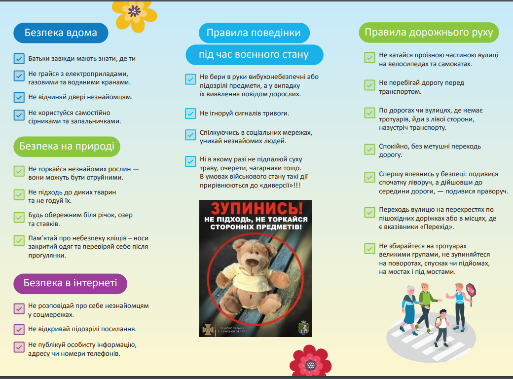 • Не чіпай невідомі тобі предмети. При виявленні вибухонебезпечних предметів, повідом дорослих.