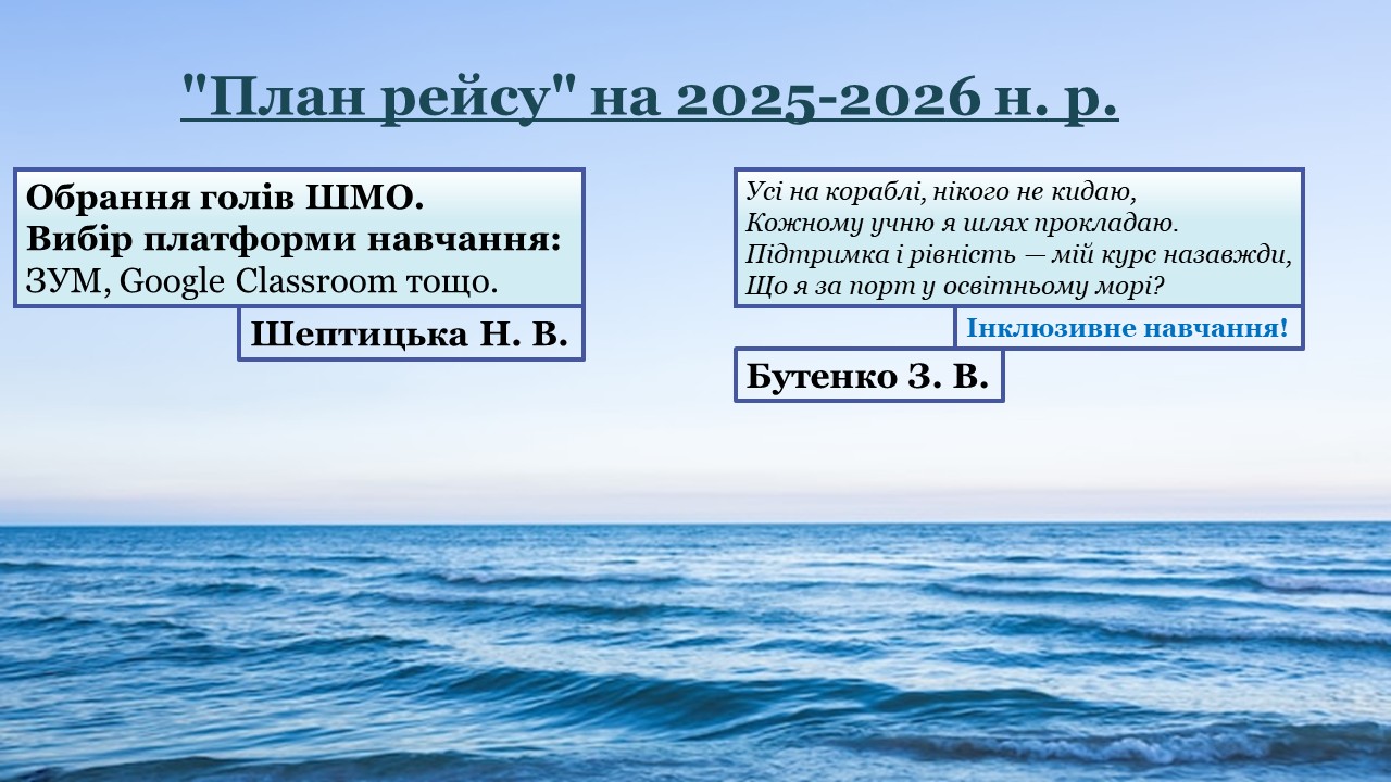 Новий 2025-2026 навчальний рік по-новому! Педагоги школи-родини 39 піднімають вітрила! Тримаємо курс на відкриття нових освітніх горизонтів! Серпнева педрада – підсумки, дослідження, окреслення майбутнього! Окрилені, натхненні, впевнені, наповнені сучасними ідеями українського вчительства, прямуємо до успіхів та перемог! Є чим поділитися, є що показати. Навчанням та вихованням дітей займаються високопрофесійні, творчі, винахідливі, передові освітяни школи-родини! Школі жити! Миру бути!