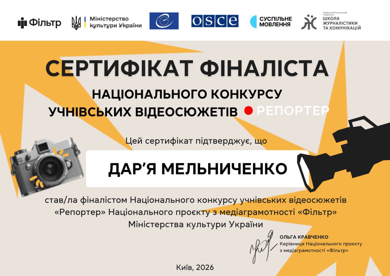 Маленькі патріоти з великим серцем. Національний конкурс – це сила! ОКСАНА НЕЧИПОРУК та ДАР’Я МЕЛЬНИЧЕНКО – слава школи-родини #39 та всієї України! Вони успішно здолали, підкорили світ своїм надзвичайно проникливим поглядом на роль волонтерства у тяжкий час лихоліття у рідному Херсон/ Ось результат! Наші учениці 11 класу стали фіналістками конкурсу 50 із 150 кращих репортерських робіт в Україні! ВІТАЄМО! Це – справжня перемога!